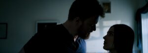 There stands Kevin (Shepka), shivering and wet claiming his tyre is busted and he’s stranded in the storm. Angela warily lets him in to shelter for a while but with the phonelines down, she has no choice but to let him stay the night.
